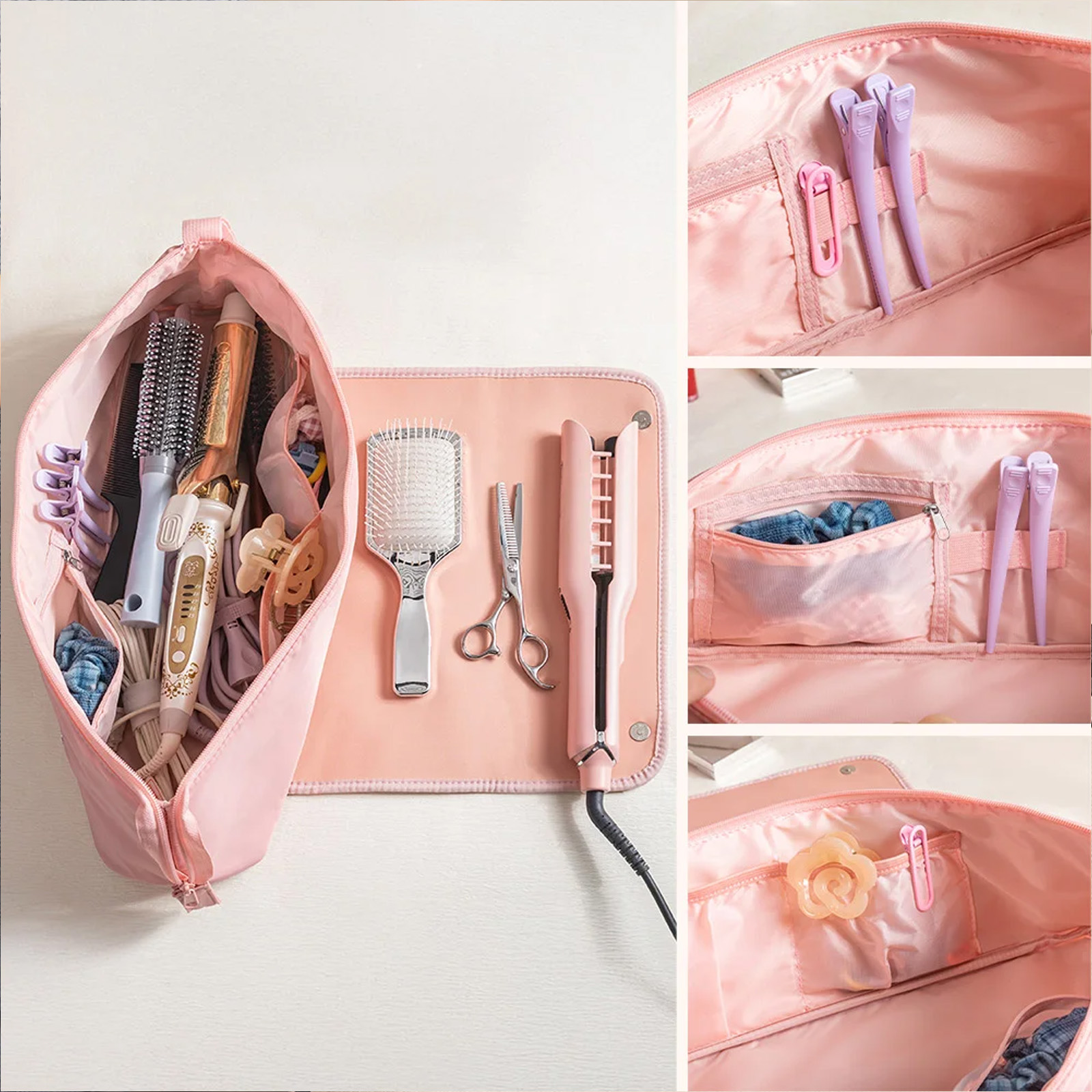 Heat-Resistant Interior Pad – Features a built-in heat-resistant panel that safely stores hot styling tools like curling wands or flat irons. The protective layer prevents scorching and keeps the bag safe for repeated use.