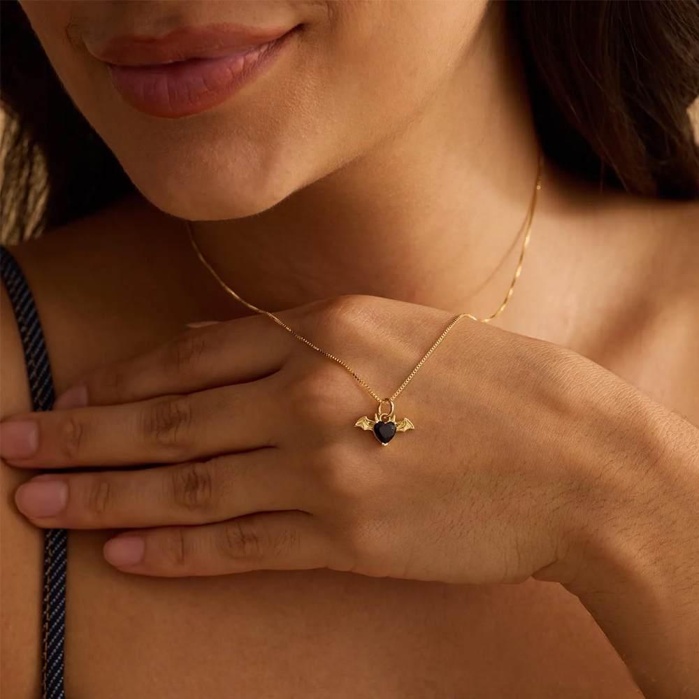 Gothic Bat Design - This elegant necklace features a delicate bat wing pendant with a heart-shaped birthstone at its center, blending dark romance and mystical charm. The intricate wings add a touch of fantasy, making it a perfect piece for gothic fashion lovers.