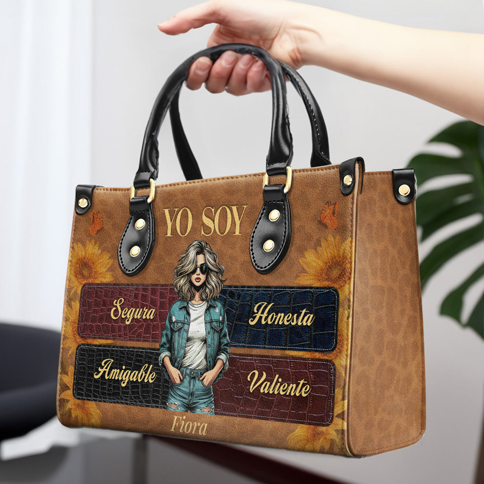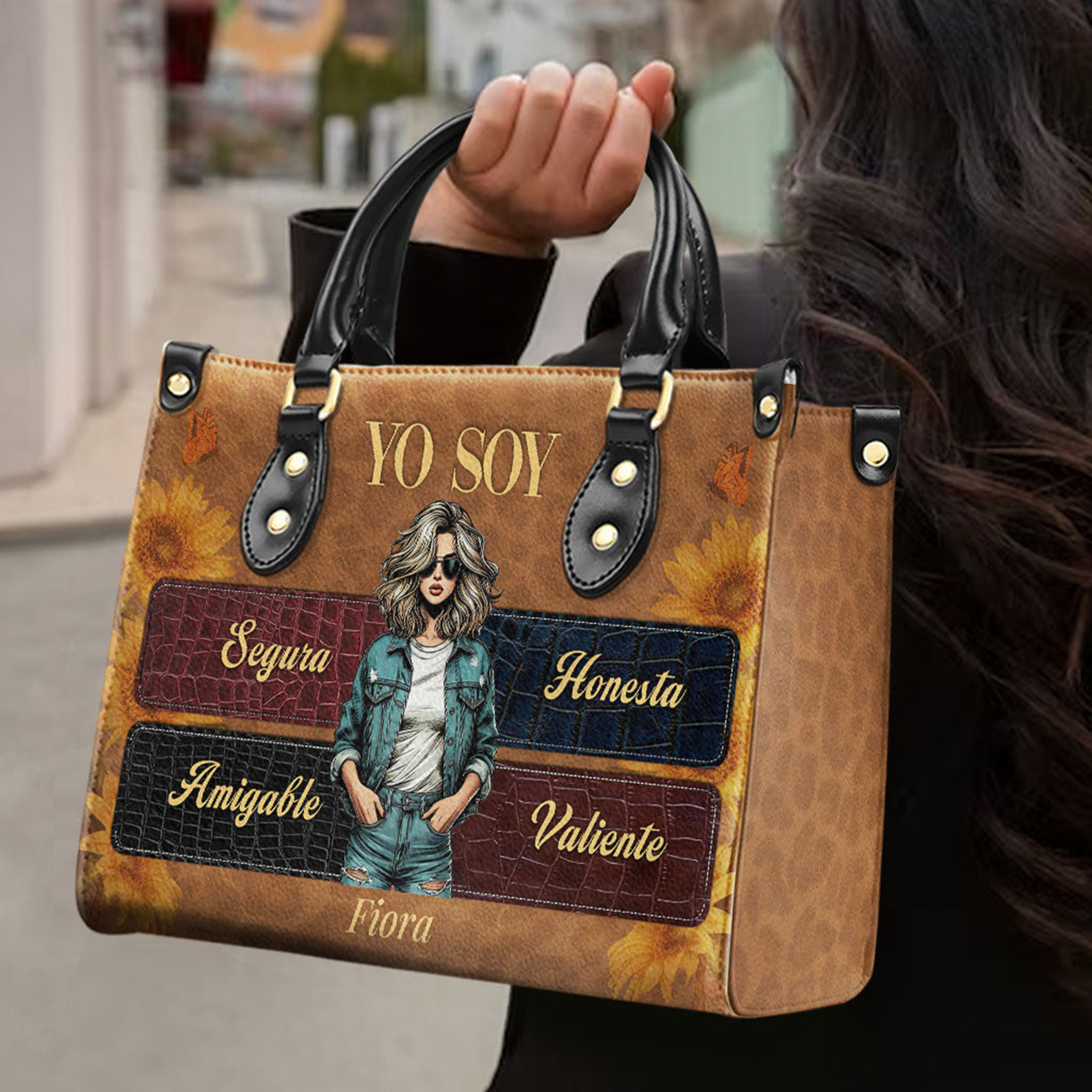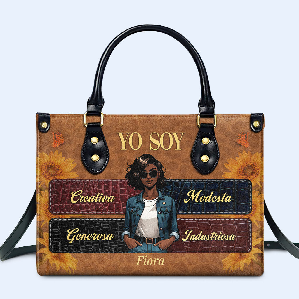 Personalized Empowerment Yo Soy Tote Bag with Name, Leather Vintage Motivational Self-love Quote Handbag, Birthday/Mother's Day Gift for Mom/Women/Her