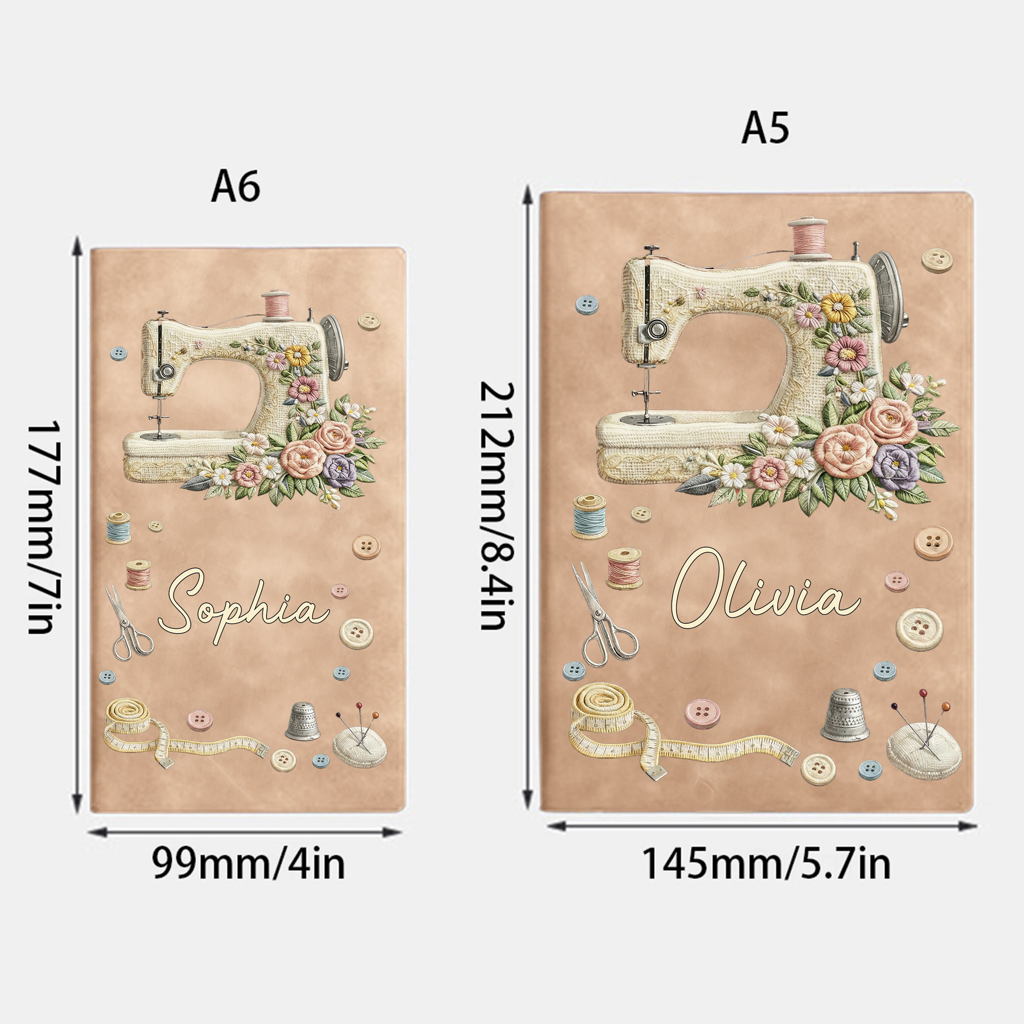 | Style | Personalized Floral Sewing Machine A5 Notebook with Name |