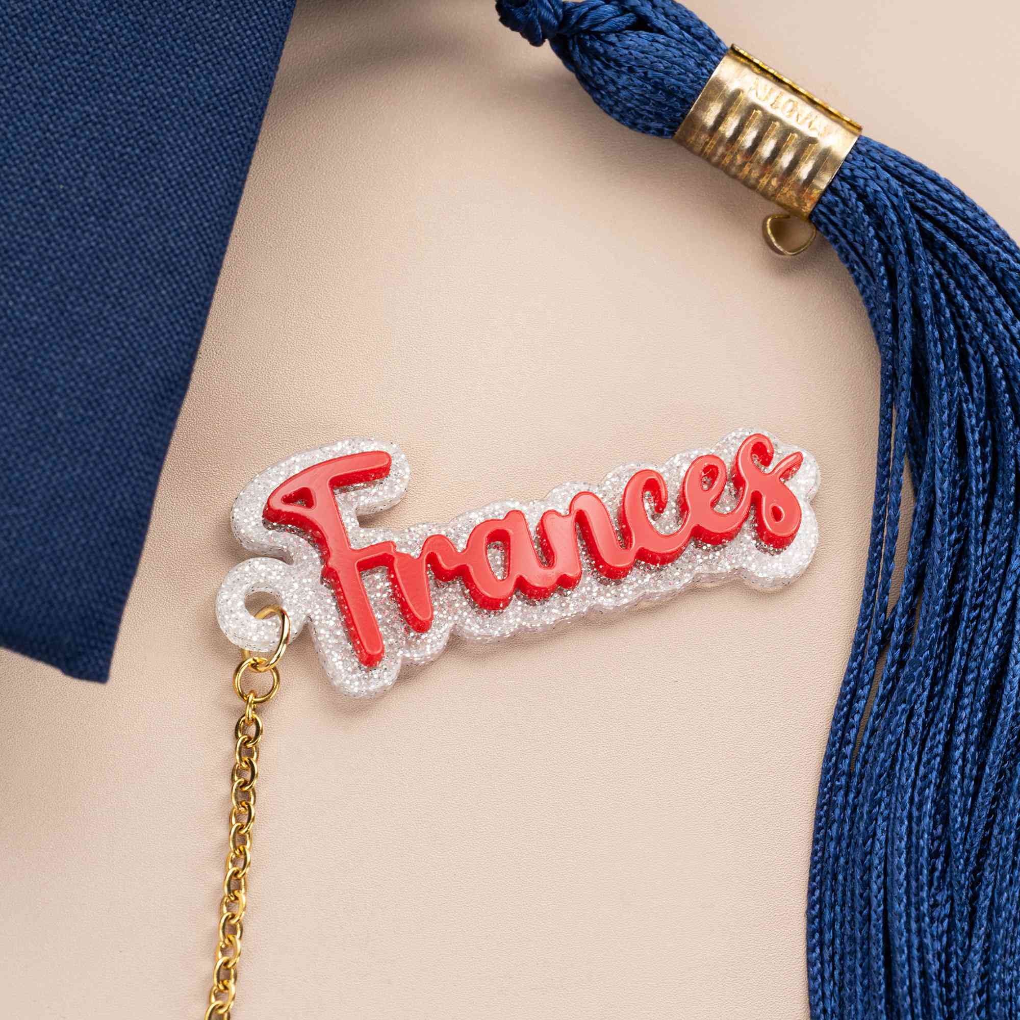Quality Guaranteed - The name charm is crafted from premium acrylic that is lightweight yet sturdy, offering a refined look that lasts. A polished metal chain adds shine, while the year charm features smooth edges and a reliable clasp that secures it firmly to the cap for confident wear.