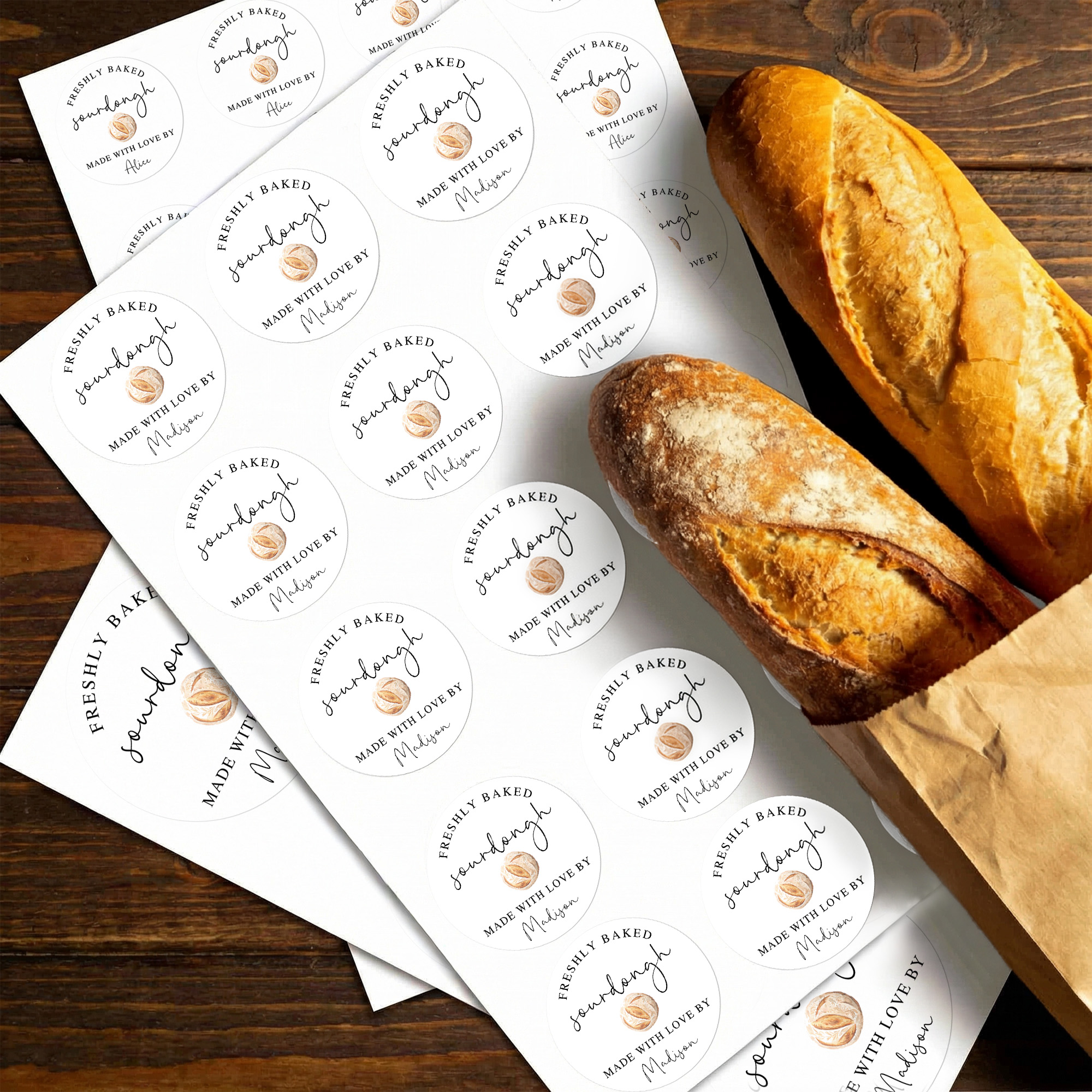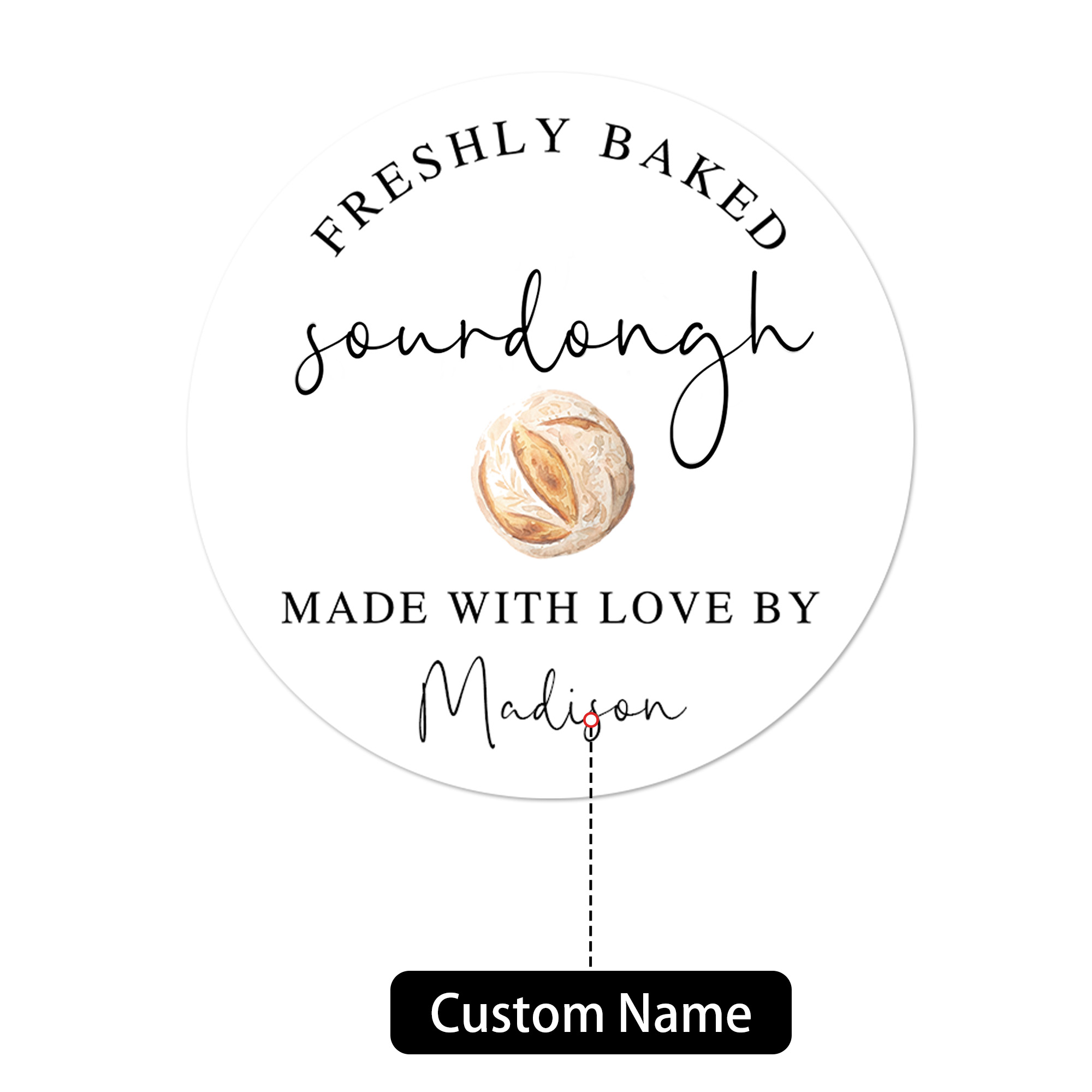 | Style | Personalized Name Round Sourdough Stickers |