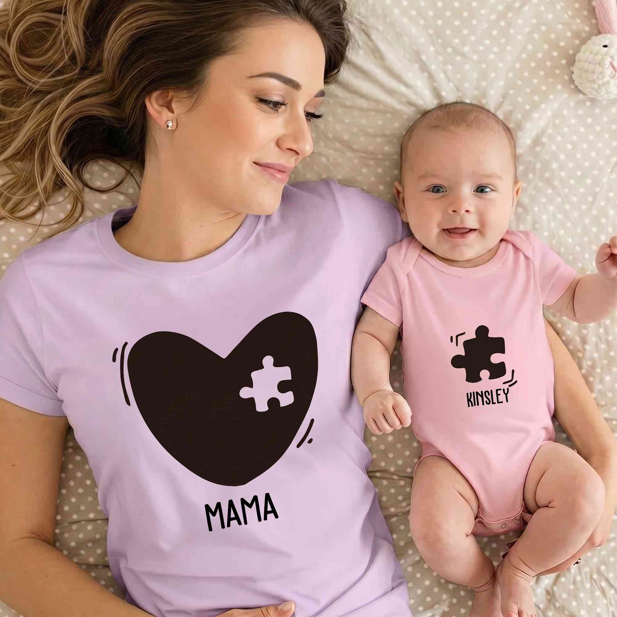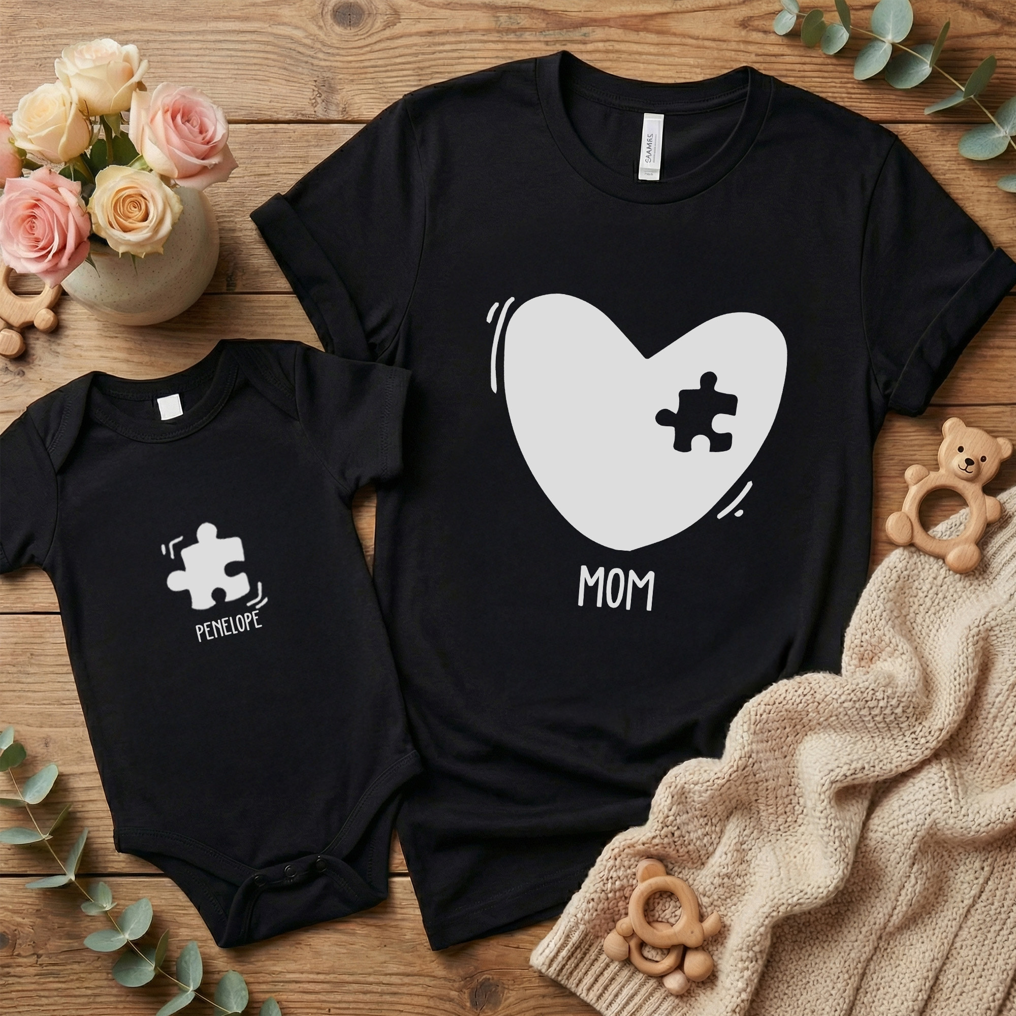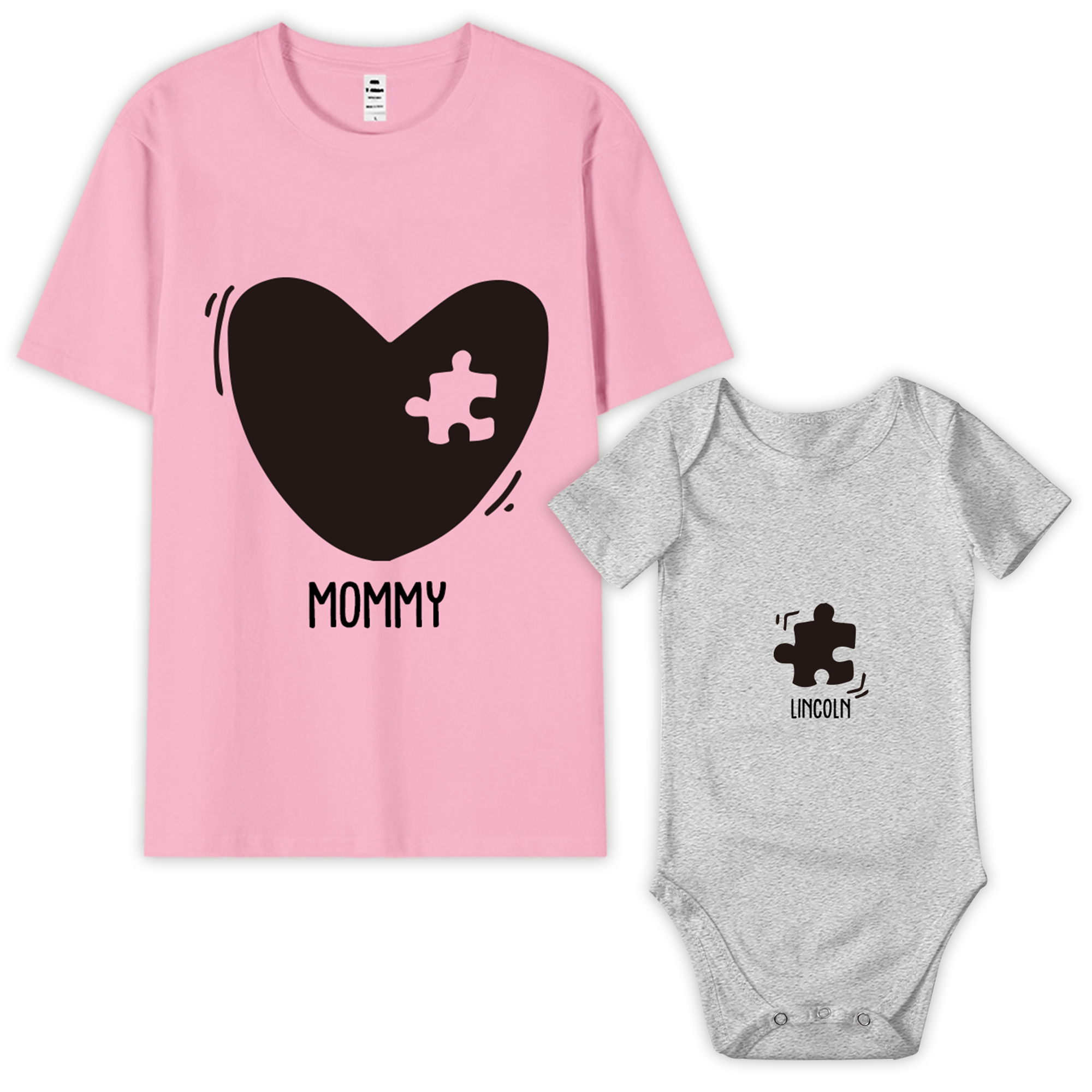 | Style | Personalized Names Heart Puzzle Mom T-Shirt & Baby Bodysuit Set |