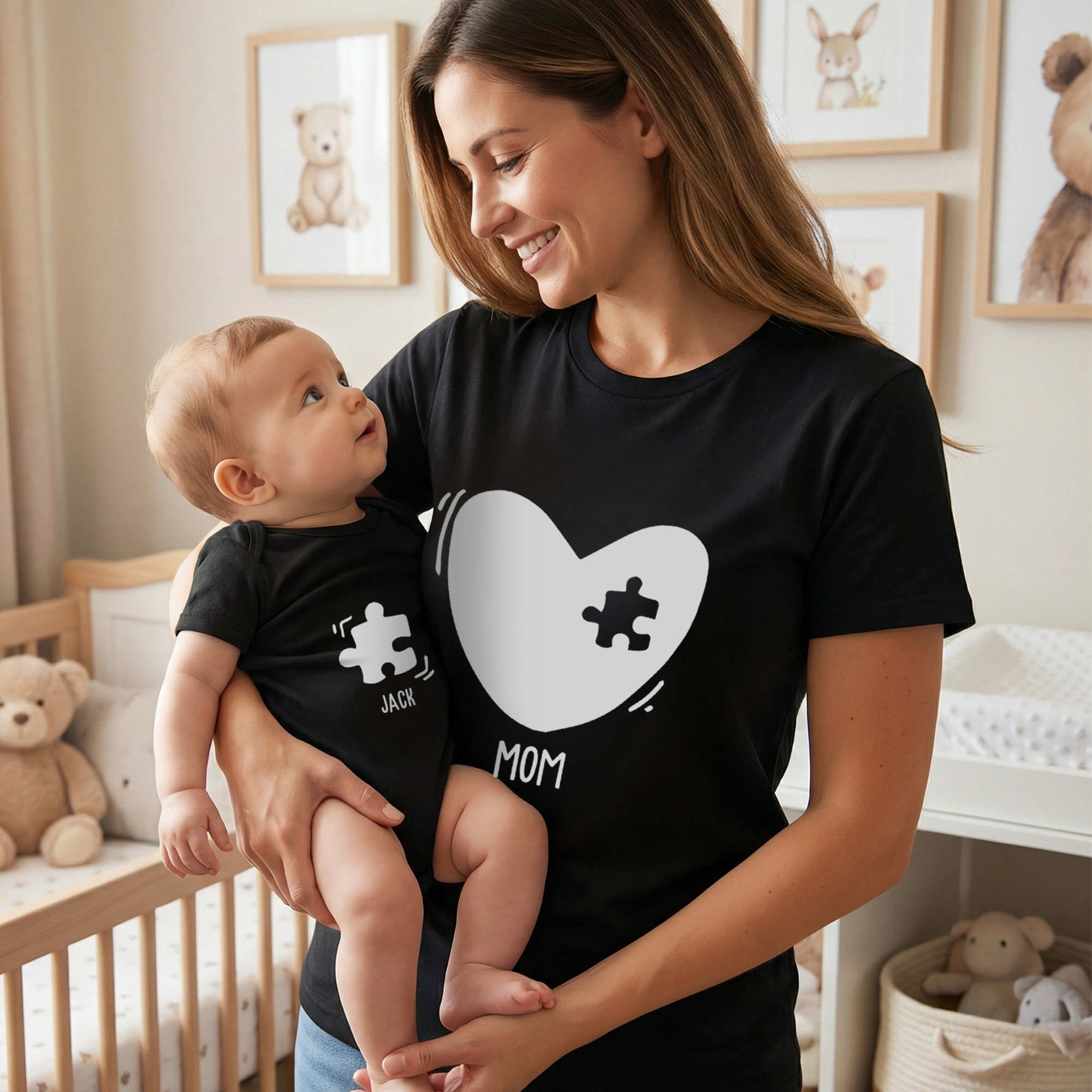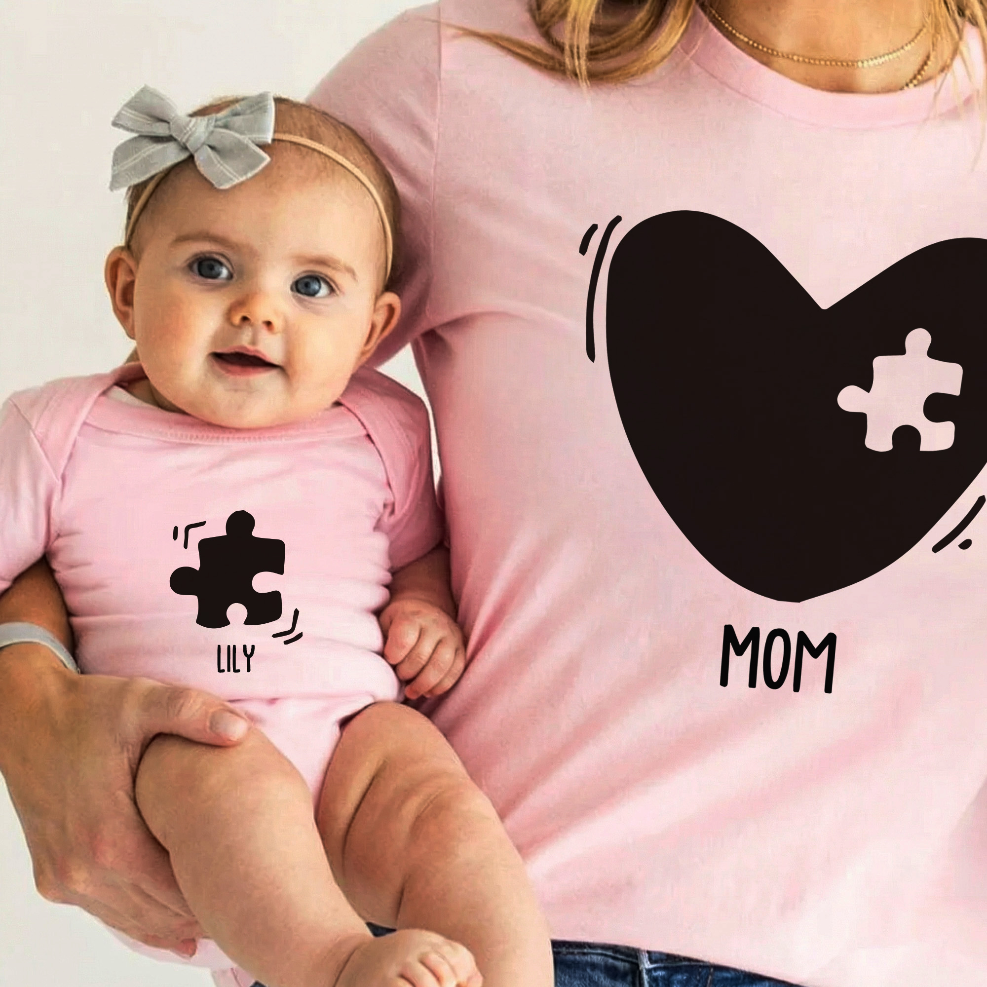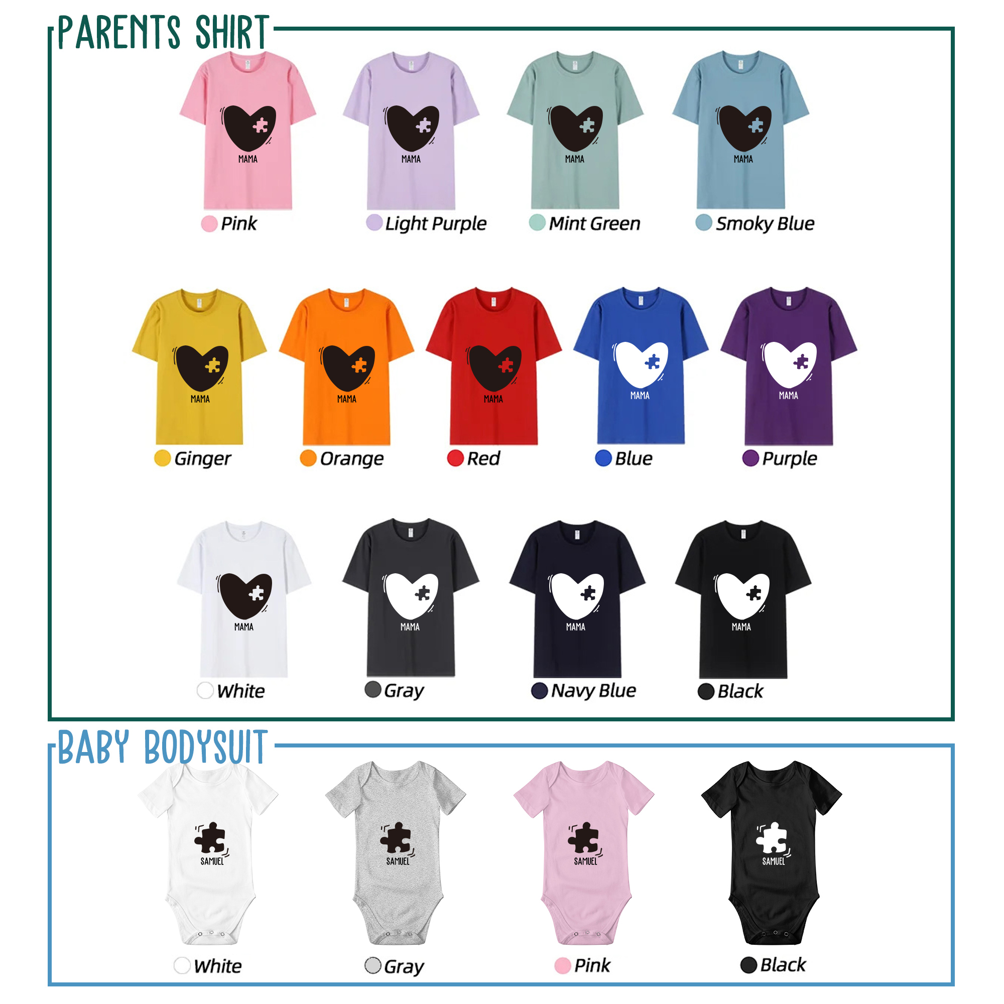 | Style | Personalized Names Heart Puzzle Mom T-Shirt & Baby Bodysuit Set |